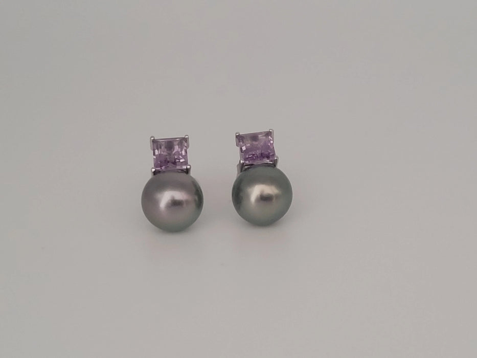 South Sea Pearl Earrings handcrafted in 18K White Gold with Tahiti Pearls and precious stones Amethyst.